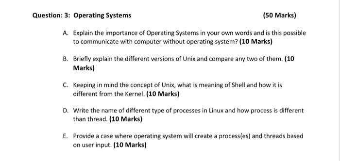 Solved Question 3 Operating Systems 50 Marks A Explain Chegg Com